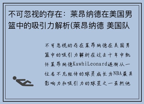 不可忽视的存在:莱昂纳德在美国男篮中的吸引力解析