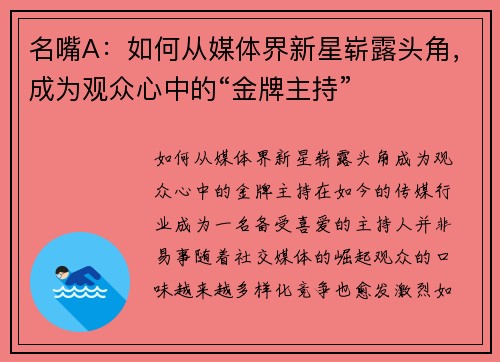 如何从媒体界新星崭露头角,成为观众心中的“金牌主持”