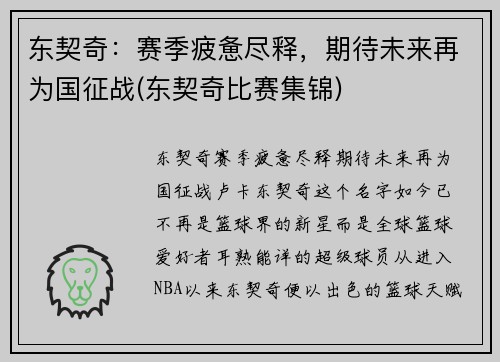 一、东契奇的赛季回顾:疲惫与坚持的交织